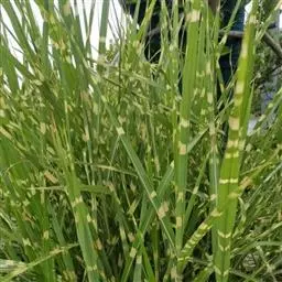 茎极狭,长约1m,宽约2cm,下垂,边缘具细齿,呈灰绿色,被短毛。圆锥花序大,雌花穗银白色,具光泽,小穗轴节处密生绢丝状毛,小穗由2-3花组成。雄穗为宽塔形,疏弱。花期9-10月。