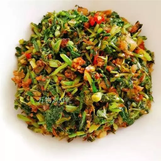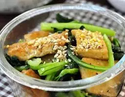 加芝麻,炒匀,即可盛菜