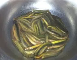 炸到金黄干香后捞出,沥干油备用