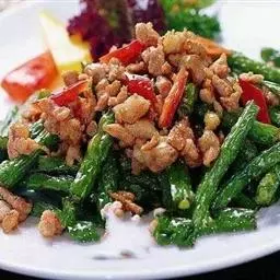 干煸四季豆是一道特色传统菜肴,属于川菜菜系,主要制作材料有四季豆、猪肉、红干辣椒等。干煸四季豆口味…