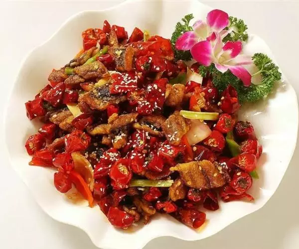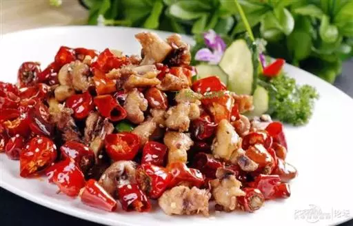 辣子鸡因各地的不同制作方法也有不同的特色,深受各地人们的喜爱。此菜成菜色泽棕红油亮,麻辣味浓,鲜香可口。