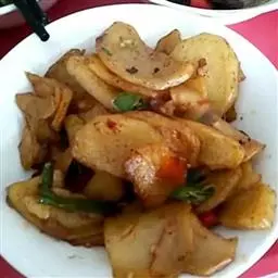 我们将所有食材翻炒均匀,也差不多快熟了(在翻炒中要火大,动作要快,这样出锅才香),就可以最后的调味了,加入味精、鸡精、生抽,尝一下,味道淡了再加点生抽,不要加盐。最后在出锅前,淋入一点香油、藤椒油。