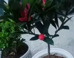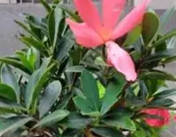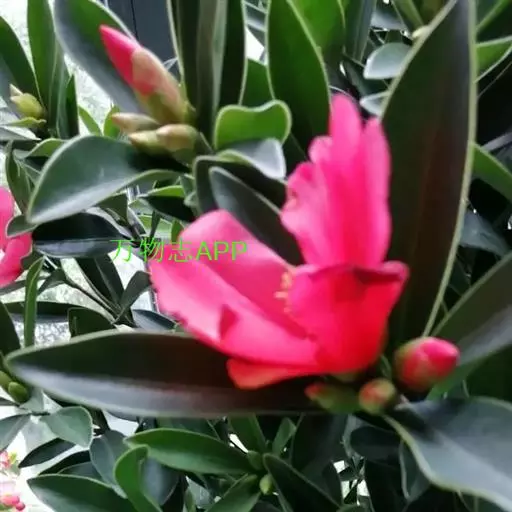 美人茶:山茶的栽培品种。叶长椭圆形,有光泽,叶缘有钝锯齿,较稀。花色大红或水红,喇叭形,较繁多花期1-4月。