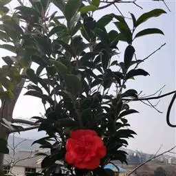 大花金心:山茶的栽培品种。叶椭圆形,边缘具细锯齿。花单生,色大红,花朵小。花期3-4月。