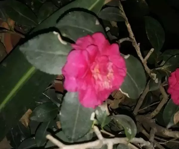 凯夫人:山茶的变种。新叶淡红色,带红斑或云斑。中至大型花,花瓣带小锯齿。中花花期。