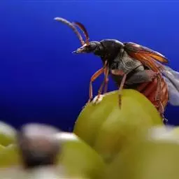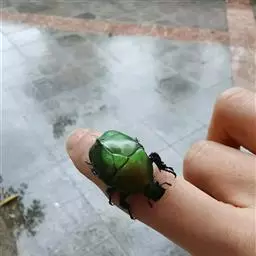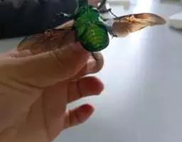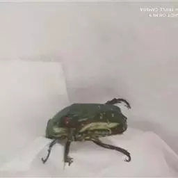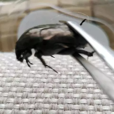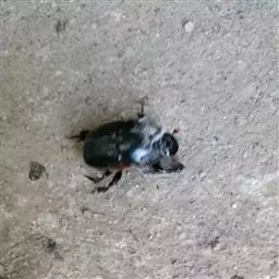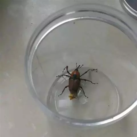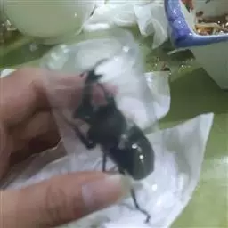 双叉犀金龟目前不是珍稀物种,但是其生存也面临一些威胁。 被防鸟网缠死的双叉犀金龟