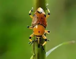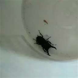 独角仙交配 成熟后的双叉犀金龟成虫雄性有强烈的交配欲望,只要遇到雌性成虫就会试图交配。但是雌虫对交配较为抗拒,特别是已经交配过的雌虫,会拼命逃离雄虫。雄虫会用后足和中足攀附在树皮上,前足抱住雌虫进行交配。如果雌虫正在进食,往往不会注意身后的雄虫,这种情况下交配会比较顺利。交配过程可以持续几分钟到几十分钟。交配(尤其是频繁交配)会使雄虫寿命缩短,因此在野外独角仙雄性成虫寿命仅有1个月左右,而雌性成虫可达3个月,而人工饲养的独角仙雄虫如果不交配寿命也能达到3个月。