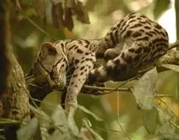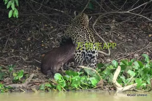 休息中的美洲豹 它们生活于多水之地,且跟虎一样,是喜欢游泳的猫科动物。美洲豹爱独行,是蛰伏突袭的掠食者,在选择猎物方面,它们完全是投机取巧的。它们是顶级掠食者和基石物种(keystone species),在平衡生态系统和调节猎物数量方面占着举足轻重的地位 。