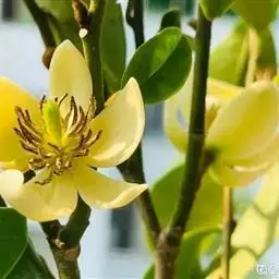 多花含笑是木兰科,含笑属小乔木,高可达20米。芽圆柱形或狭卵形,嫩枝被淡黄色绒毛,老枝无毛,叶革质…