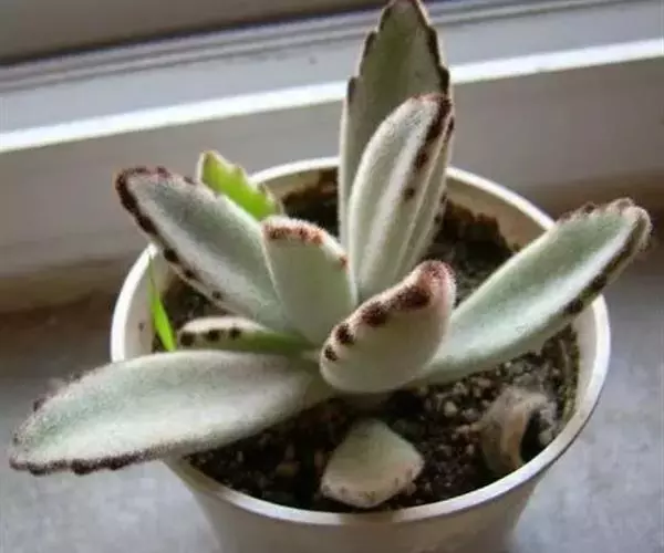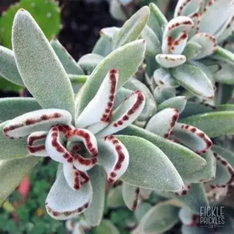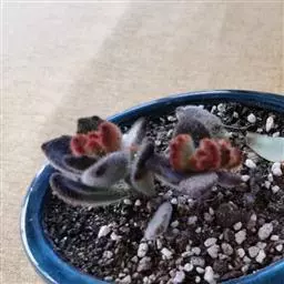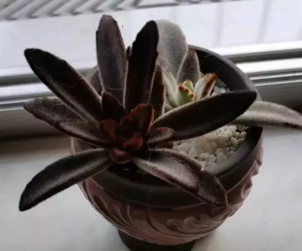 黑兔耳是景天科伽蓝菜属的 多肉植物,别名巧克力兔耳,是月兔耳的栽培品种。卵形叶被绒毛,形如兔子的耳朵,叶缘有深褐色斑点,叶色偏灰,易分枝。晚秋至早春生长旺盛。喜阳光充足的环境,夏季要适当遮荫,不能过于荫蔽。