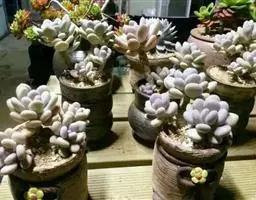 福兔耳是景天科伽蓝菜属的多肉植物,野外分布于非洲马达加斯加中部。植株叶片对生,长梭型,…