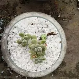 盆土可以用煤渣混合泥炭、少量珍珠岩,比例大概6:3:1,土表铺设了河沙。