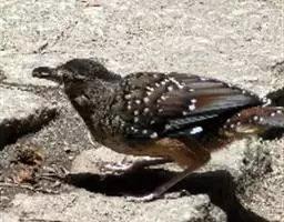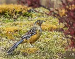 大噪鹛:中型鸟类,体长32-36厘米。额至头顶黑褐色,背栗褐色满杂以白色斑点,…