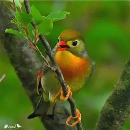 银耳相思鸟小型鸟类,体长14~18厘米。头顶黑色,耳羽银灰色,前额橙黄色;外侧飞羽橙黄色,基部朱红色,…