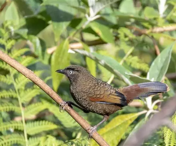 纯色噪鹛(学名:Trochalopteron subunicolor)是鹟科、噪鹛属中型鸟类,体长22-24厘米。上下体羽大都呈橄榄褐色或棕褐色,各羽均具黑色羽缘,在上下体形成密集的鳞状斑。外侧飞羽外硼基部草黄色,在翅上形成明显的块斑;外侧尾羽大都黑褐色具白色端斑。虹膜褐色或淡黄褐色,嘴黑褐色,脚暗褐或角褐色。