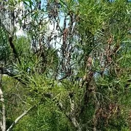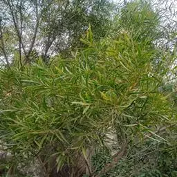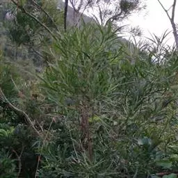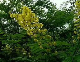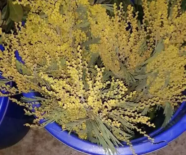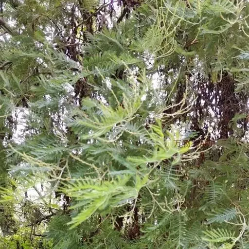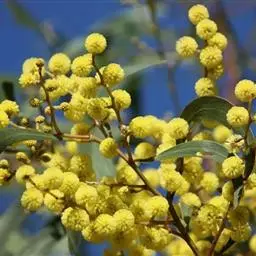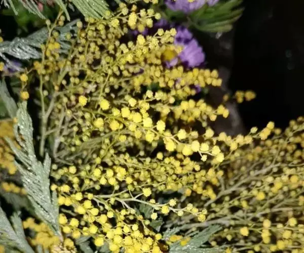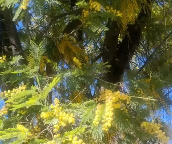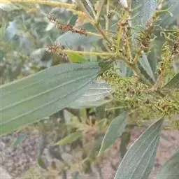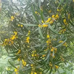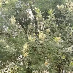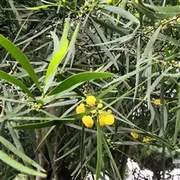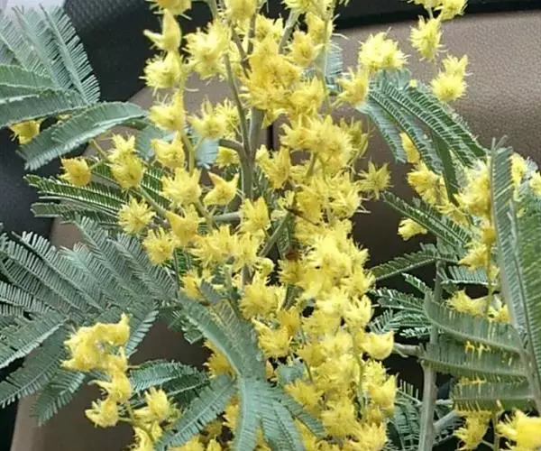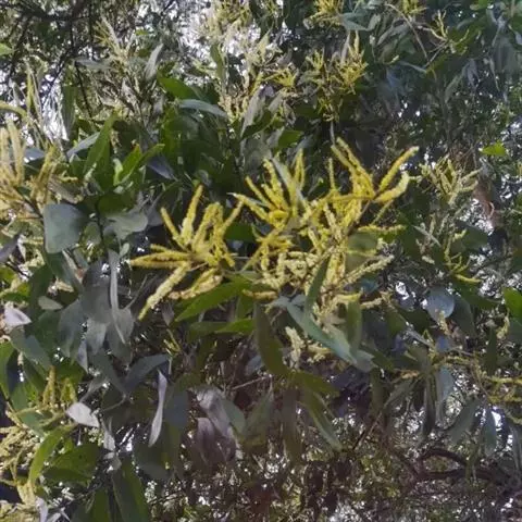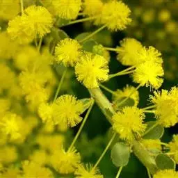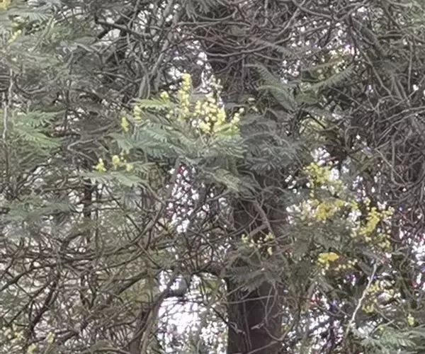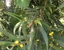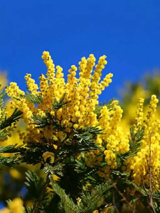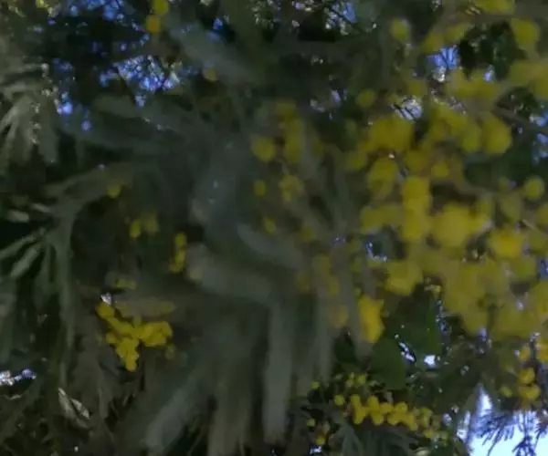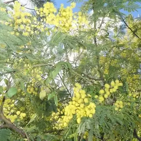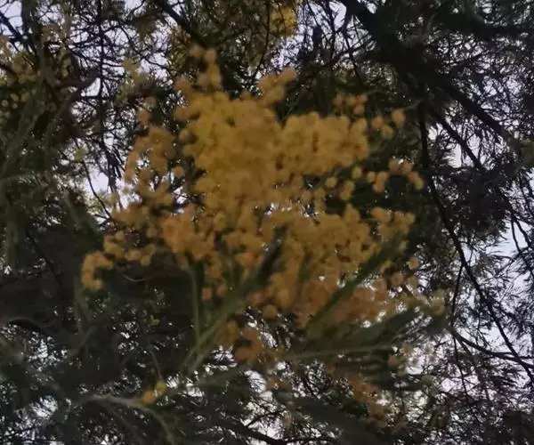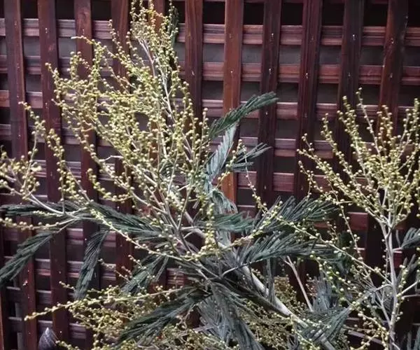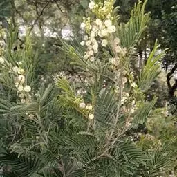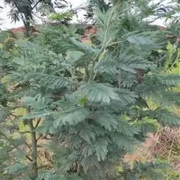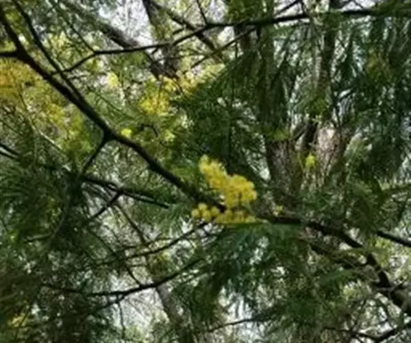 银荆(学名:Acacia dealbata Link),被子植物豆科常绿乔木,高约25米,树干较直,树皮灰绿或灰色;二回羽状复叶,偶数,小叶线形,银灰色或浅灰蓝色。3~4月开花,头状花序,具小花30-40朵,花黄色,有香气。荚果长带形,长3.5-11厘米,果皮暗褐色,密被绒毛。种子卵圆形,黑色,有光泽。