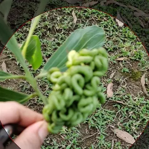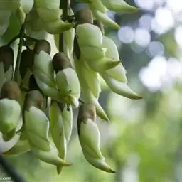 荚果长圆形,长3-8厘米,宽7-12毫米,扁压,无毛,通常被白霜,红棕色或黑色。花期4月;果期7-8月。