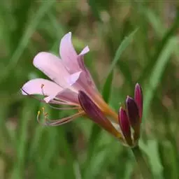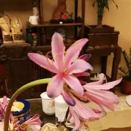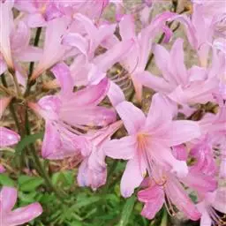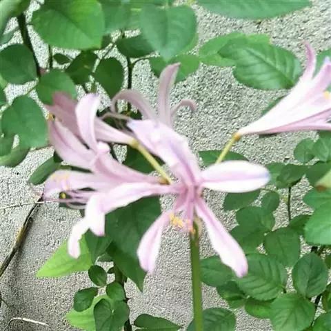 鹿葱(学名:Lycoris squamigera Maxim.)草本,1959年由Maxim命名;地生。鳞茎卵形。秋季出叶,叶带状,顶端钝圆。伞形花序,有花4-8朵,淡紫红色。花被裂片倒披针形,边缘基部微皱缩。雄蕊与花被裂片近等长。花柱略伸出花被外。