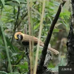 点胸鸦雀是莺科、鸦雀属小型鸟类,体长18-21厘米。头顶至枕橙棕色,嘴橙黄色、短而粗厚,脸皮黄色,…