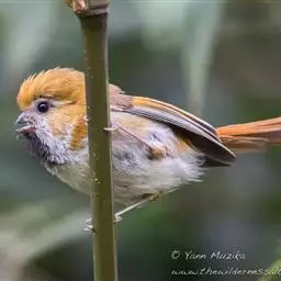 文须雀,别称髭雀、文须山雀,属雀形目、鹆鸟科、画眉亚科。眼先及髭纹黑色,头顶暗灰,…