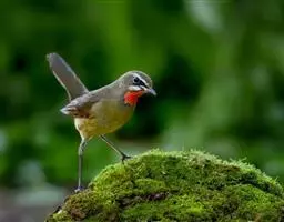 叫声:高音的唧啾叫声cheeps或chirrs,告警时发出吐气音的颤鸣;尖而高的颤音似橙额鸦雀。