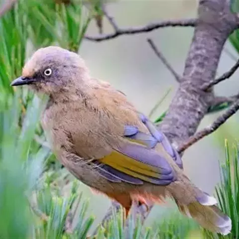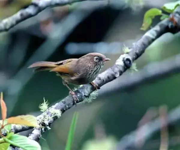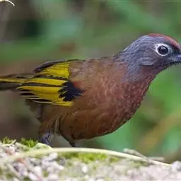 棕头雀鹛(学名:Alcippe ruficapilla):小型鸟类,体长10-13厘米。头顶栗褐色具黑色侧冠纹。上体茶黄色,飞羽外侧表面灰白色,内侧表面红棕色,内外二色之间夹有黑色。颏、喉白色具不明显的暗色纵纹,胸沾葡萄灰色,其余下体茶黄色。