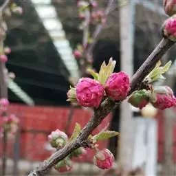 四、杏梅类(Armeniaca mume var. bungo Makino) 枝和叶似山杏;花半重瓣,粉红色,如杏梅、洋梅、送春等品种。花期较晚,抗寒性较强,可能是杏与梅的天然杂交种。
