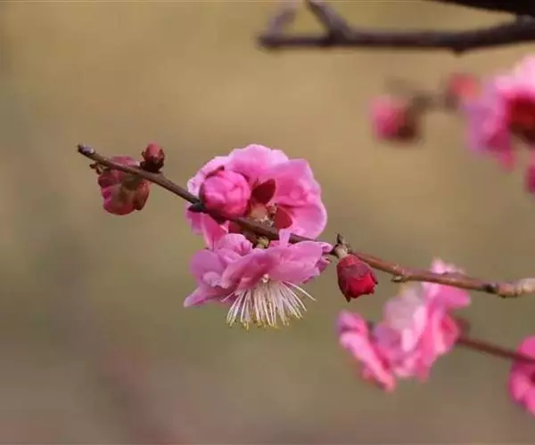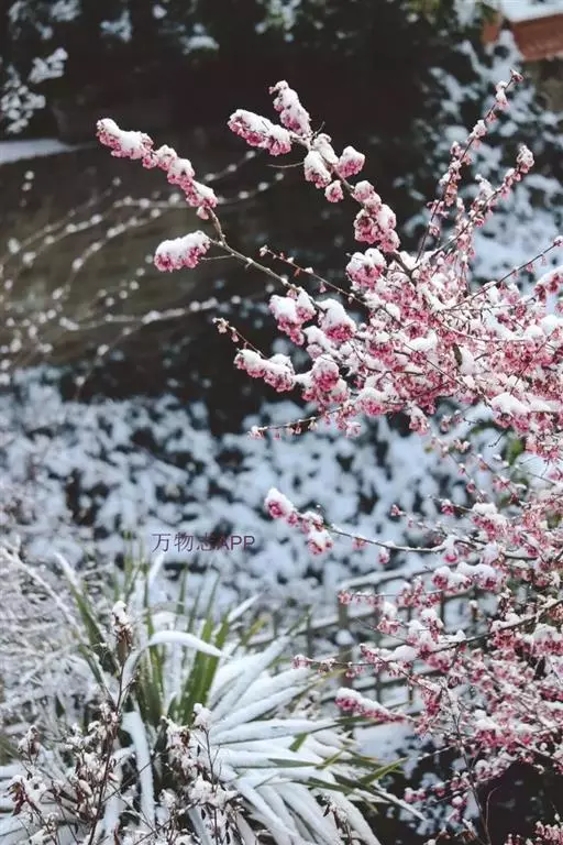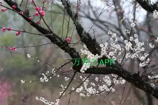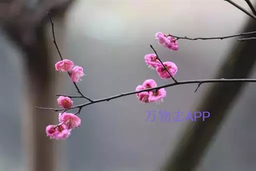 梅(学名:Armeniaca mume Sieb.):小乔木,稀灌木,高4-10米;树皮浅灰色或带绿色,平滑;小枝绿色,光滑无毛。叶片卵形或椭圆形,叶边常具小锐锯齿,灰绿色。花单生或有时2朵同生于1芽内,直径2-2.5厘米,香味浓,先于叶开放;花萼通常红褐色,但有些品种的花萼为绿色或绿紫色;花瓣倒卵形,白色至粉红色。果实近球形,直径2-3厘米,黄色或绿白色,被柔毛,味酸;果肉与核粘贴;核椭圆形,两侧微扁。花期冬春季,果期5-6月。2n=16,24。
