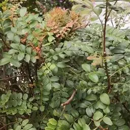 防治方法:盆栽用土或地栽园土,要将其pH值调整至6.5以下;用自来水浇花,要先放置3-5天,并在其中加入少量的硫酸亚铁颗粒;生长季节每月浇施一次矾肥水,可预防黄化病的发生;叶片出现较严重的黄化后,可用0.3%的硫酸亚铁溶液浇施根部,用0.2%的药液喷洒叶面,半月一次,浇喷兼施、双管齐下,可促成其嫩叶褪黄变绿。少量盆栽也可考虑用1%的食醋液或0.5%柠檬酸液浇施根部。