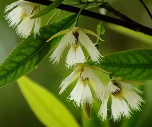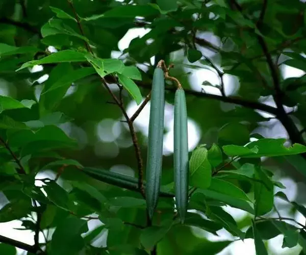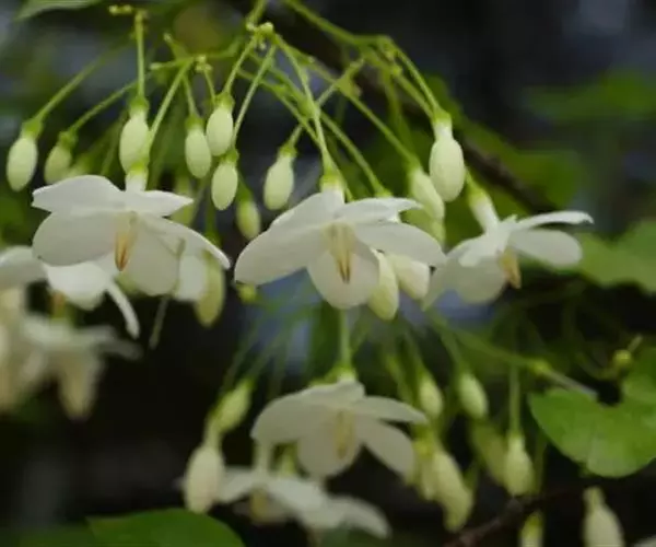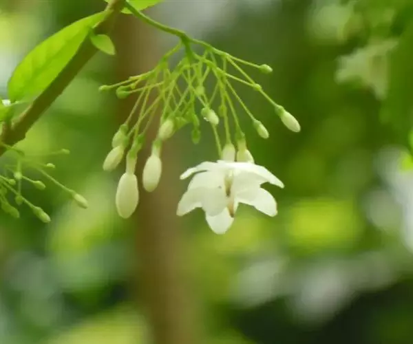 倒吊笔(Wrightia pubescens R. Br.)别名九龙木、墨柱根、章表根、苦常、土北芪、枝桐木、猪松木、细姑木、刀柄,夹竹桃科倒吊笔属常绿乔木。高8-20米,胸径可达60厘米,含乳汁;叶坚纸质,卵圆形或卵状长圆形;聚伞花序内面基部有腺体;花冠漏斗状,白色、浅黄色或粉红色;副花冠呈流苏状;雄蕊伸出花喉之外,花药箭头状,被短柔毛;子房由2枚粘生心皮组成,柱头卵形。花期4-8月,果期8月-翌年2月。
