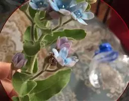 聚伞花序长约5厘米;总花梗长0.5-1.5厘米;花梗长约1厘米;萼片阔卵形或卵形,顶端钝,比花冠筒短,被微柔毛,内面基部有腺体;花冠漏斗状,白色、浅黄色或粉红色,花冠筒长5毫米,裂片长圆形,顶端钝,长约1.5厘米,宽7毫米;副花冠分裂为10鳞片,呈流苏状,比花药长或等长,其中5枚鳞片生于花冠裂片上,与裂片对生,长8毫米,顶端通常有3个小齿,其余5枚鳞片生于花冠筒顶端与花冠裂片互生,长6毫米,顶端2深裂;雄蕊伸出花喉之外,花药箭头状,被短柔毛;子房由2枚粘生心皮组成,无毛,花柱丝状,向上逐渐增大,柱头卵形。