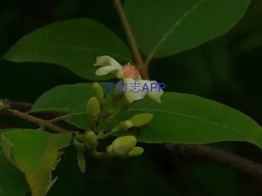 叶坚纸质,每小枝有叶片3-6对,长圆状披针形、卵圆形或卵状长圆形,顶端短渐尖,基部急尖至钝,长5-10厘米,宽3-6厘米,叶面深绿色,被微柔毛,叶背浅绿色,密被柔毛;叶脉在叶面扁平,在叶背凸起,侧脉每边8-15条;叶柄长0.4-1厘米。