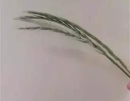 总状花序2-5枚,长4-8厘米,最长两枚成对而生,呈指状排列在主轴上;小穗长圆状披针形,长2.2-2.5毫米,疏生柔毛,单生;第一颖缺;第二颖与第一外稃等长或第二颖稍短;第一内稃缺;第二外稃革质,短于小穗,具细点状横皱纹,先端钝而疏生细毛,边缘稍厚,包着同质内稃;鳞片2,折叠,具细脉纹;花柱基分离,柱头羽状,白色。