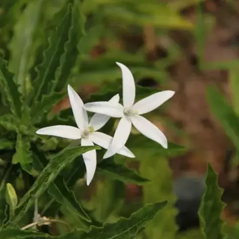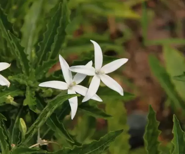 叶片狭长,叶缘呈不规则的深锯齿状,花着生顶部,先端花瓣五裂,像星状。