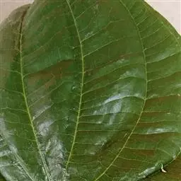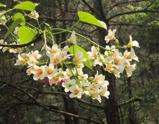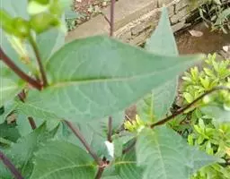 叶片长卵状心脏形,有时为卵状心脏形,长达20厘米,顶端长渐尖或锐尖头,其凸尖长达2厘米,新枝上的叶有时2裂,下面有星毛及腺,成熟叶片下面密被绒毛,有时毛很稀疏至近无毛;叶柄长达12厘米。