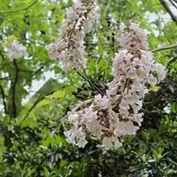 白花泡桐(学名:Paulownia fortunei (Seem.) Hemsl.)是玄参科泡桐属植物,乔木高达30米,树冠圆锥形,主干直,胸径可达2米,树皮灰褐色;叶片长卵状心脏形,有时为卵状心脏形。花序枝几无或仅有短侧枝,故花序狭长几成圆柱形;雄蕊长3-3.5厘米,有疏腺;蒴果长圆形或长圆状椭圆形。种子连翅长6-10毫米。花期3-4月,果期7-8月。
