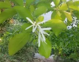幼枝、叶、花序各部和幼果均被黄褐色星状绒毛,但叶柄、叶片上面和花梗渐变无毛。
