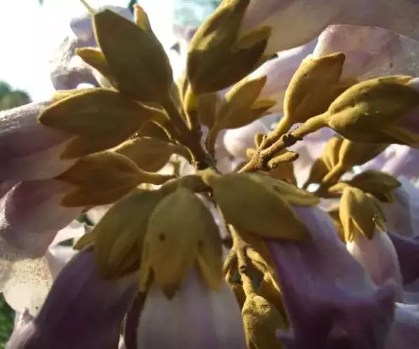 蒴果长圆形或长圆状椭圆形,长6-10厘米,顶端之喙长达6毫米,宿萼开展或漏斗状,果皮木质,厚3-6毫米;种子连翅长6-10毫米。花期3-4月,果期7-8月。