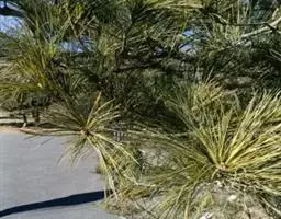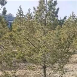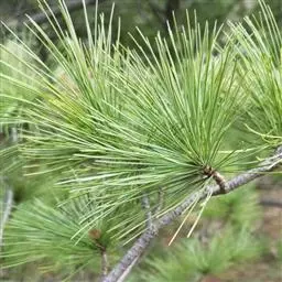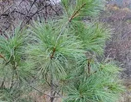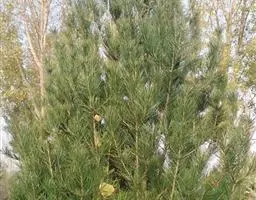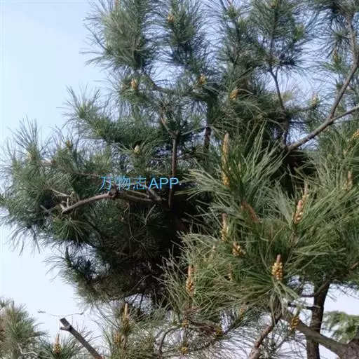 乔木,高达30米,胸径可达3米;有明显的主干,或从树干近基部分成数干;枝较细长,斜展,形成宽塔形至伞形树冠;幼树树皮光滑,灰绿色,长大后树皮成不规则的薄块片脱落,露出淡黄绿色的新皮,老则树皮呈淡褐灰色或灰白色,裂成不规则的鳞状块片脱落,脱落后近光滑,露出粉白色的内皮,白褐相间成斑鳞状;一年生枝灰绿色,无毛;冬芽红褐色,卵圆形,无树脂。针叶3针一束,粗硬,长5-10厘米,径1.5-2毫米,叶背及腹面两侧均有气孔线,先端尖,边缘有细锯齿;横切面扇状三角形或宽纺锤形,单层皮下层细胞,在背面偶尔出现1-2个断续分布的第二层细胞,树脂道6-7,边生,稀背面角处有1-2个中生;叶鞘脱落。雄球花卵圆形或椭圆形,长约l厘米,多数聚生于新枝基部成穗状,长5-10厘米。