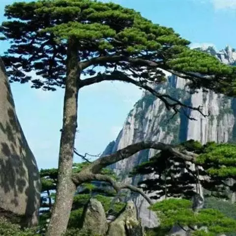 黄山松是松科松属乔木状。树高30米;树皮深灰褐色,会裂成不规则鳞状厚片或薄片;枝平展,…