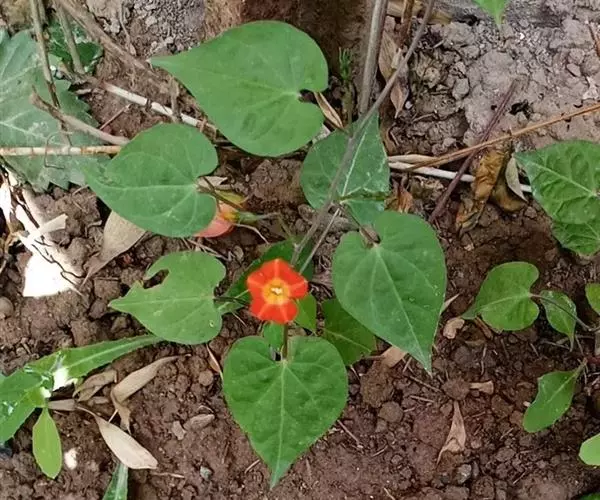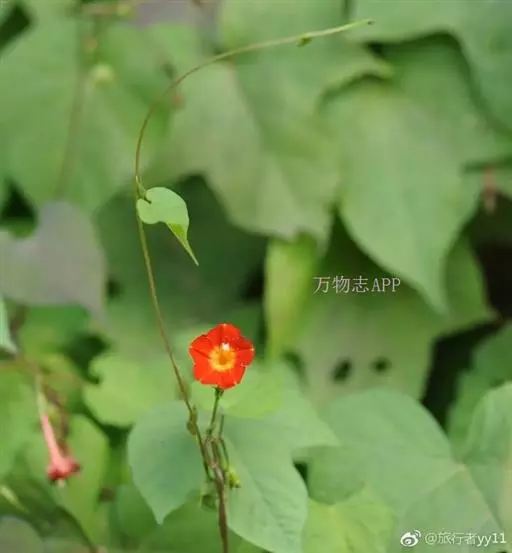 一年生草本,茎缠绕,平滑,无毛。叶心形,长3-5cm,宽2.5-4cm,骤尖,全缘,或边缘为多角形,或有时多角状深裂,叶脉掌状;叶柄细弱,几与叶片等长。