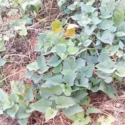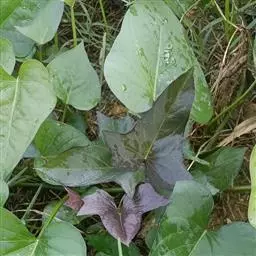 番薯 Lam.),多年生草质藤本植物,具有乳汁;其块根为白、红或黄色;茎生不定根;叶呈宽卵形或卵状心形,叶色有浓绿、黄绿、紫绿等,前端渐尖,基部呈心形或近平截;花冠为粉红、白、淡紫或紫色,呈钟状或漏斗状,无毛;蒴果呈卵形或扁圆形;由于番薯是于异花授粉,自花授粉常不结实,所以有时只见开花不见结果。 种子1-4粒,通常2粒,无毛。番薯原产于南美洲及大、小安的列斯群岛,现已广泛栽培在全世界的热带、亚热带地区,但在一些较北的地区如黑龙江省也已栽种成功,中国大多数地区都普遍栽培。番薯适应性强,喜温暖多光而不耐霜冻,抗旱耐碱,适种于肥沃而排水良好的砂质壤土,是一种易于保收的作物。番薯是一种高产而适应性强的粮食作物,在中国南方,有“一造番薯半年粮”的说法, 与工农业生产和人民生活关系密切;块根除作主粮外,也是食品加工、淀粉和酒精制造工业的重要原料;根、茎、叶可作