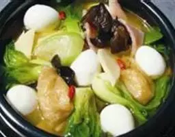 五彩时蔬是一道美食,制作材料有大白菜、猪肚、草虾、鱿鱼、海参、火腿、香菇等。