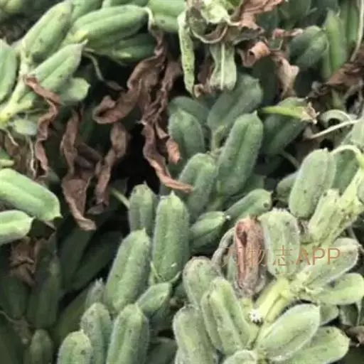 症状:病株出现花叶、皱缩, 茎秆扭曲、矮化,一般不结实或结蒴果小籽粒秕瘦。花叶扩展后变黄。
