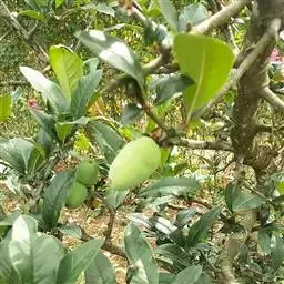 沙田柚,芸香科柑橘属乔木。树干较高,枝叶繁茂,嫩枝扁且有棱,叶质颇厚且为浓绿色,…