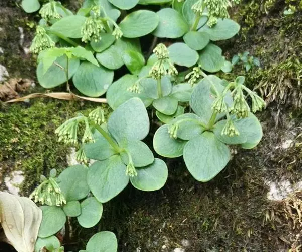 伞房状花序,总梗长1.5-3厘米;花梗长3-5毫米;萼片5,近正三角形,长0.5毫米,钝;花瓣5,白色,长圆状披针形,长3-4毫米,宽1-1.2毫米;雄蕊10,长3毫米;鳞片5,长方形,长0.8毫米;心皮5,椭圆状披针形,长3-4毫米,直立,基部1毫米合生。种子少数。