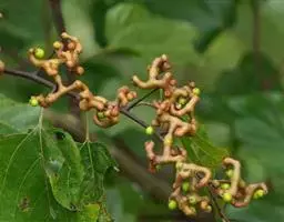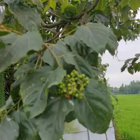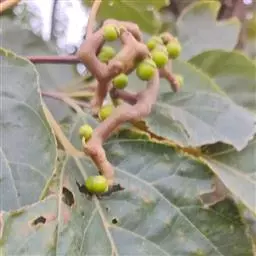 嫩枝、幼叶背面、叶柄和花序轴初有短柔毛,后脱落。叶片椭圆状卵形、宽卵形或心状卵形。果柄含多量葡萄糖和苹果酸钾,经霜后甜,可生食或酿酒,俗称“拐角”;木材硬度适中,纹理美,供建筑及制家具和美术工艺品等的用材。分布河南、陕西、甘肃陇南、江西、安徽、浙江、广东、福建、湖北、湖南、广西、四川、贵州、云南等省。果实形态似万字符,故称其树为万寿果树。果实熟透可生吃,果肉多浆,无果核,种子裸露在果肉之外,味浆甜略有甘涩,亦可做汤,汤味独特醇香。