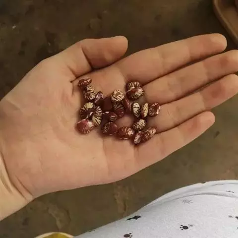 果实性状:(1)北枳椇种子扁平圆形,背面稍隆起,旗面较平坦,直径-5mm,厚1-1.5mm。表面红棕色、棕黑色或绿棕色,有光泽,于扩大镜下观察可见散在凹点,基部凹陷处有点状淡色种脐,顶端有微凹的合点,腹面有纵行隆起的种脊。种皮坚硬,胚乳白色,子叶淡黄色,肥厚,均富油质。气微,味微涩。 (2)积椇种子暗褐色或黑紫色,直径3.2-4.5mm。(3)毛果枳椇种子黑色、黑紫色或棕色,近圆形,直径4-5.5mm,腹面中部有棱,背面有时具乳头 拐枣 状突起。广东、广西等地有以连肉质花序轴一并入药。均以饱满、有光泽为佳。