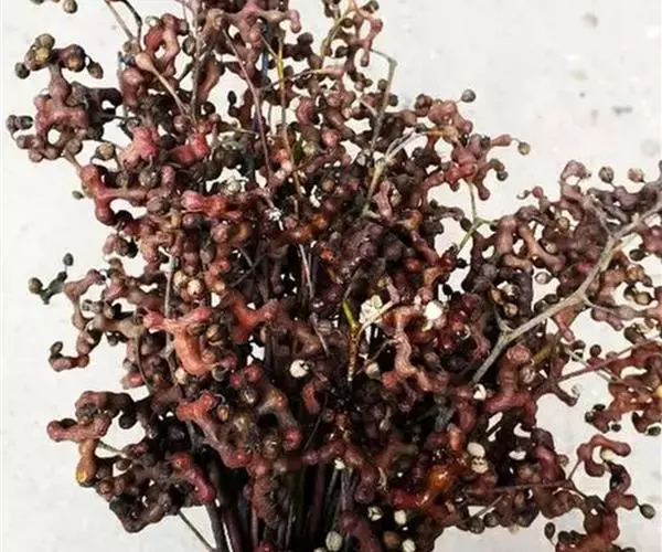 收获加工和出售:果实未成熟好,果梗含有较多单宁酸;味涩酸难食。在冬季 11月霜降后经过几次霜冻,果梗变为红褐时采摘。剪下果枝,储于阴凉处,后熟7到10天。即可鲜品出售,也可阴干压汁销售。还可以精加工,把果实剪下,去掉有斑点的果梗,扎成小把或单枝市售,供宾馆或酒吧客人食用。