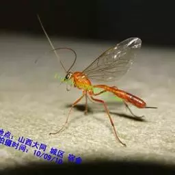 姬蜂属膜翅目姬蜂科,体长3-40毫米,黄褐色;触角细长;翅透明,前翅有两条回脉;腹部较狭长,圆筒形,…